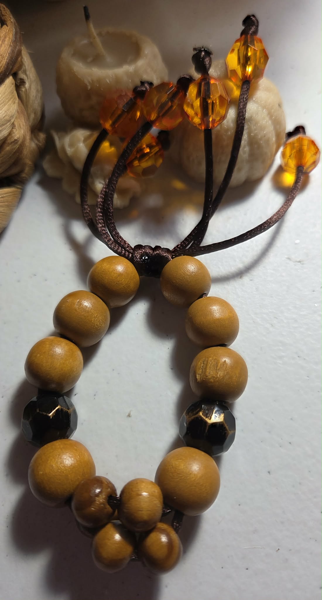 Pulsera Artesanal con decorados de esferas naranja , sencilla pulsera para acompañar vestidos claros o ropa blanca.
